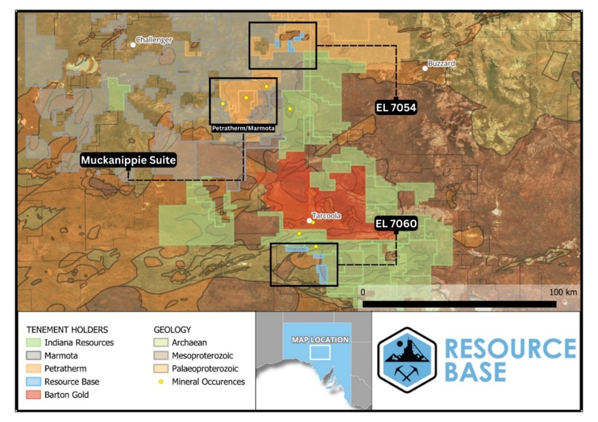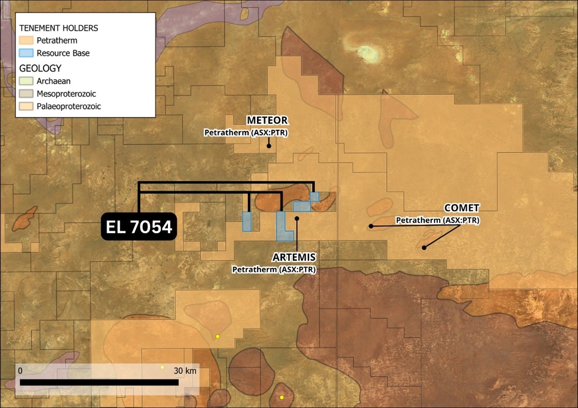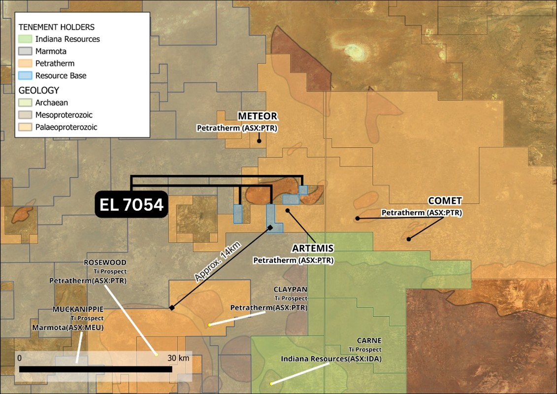 - EL7054 is located only 14km from Petratherm Limited (ASX:PTR) Muckanippie heavy mineral sands project and sits directly adjacent to PTR’s Artemis rare earth prospect